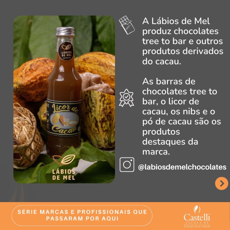 “Elegí Castelli por la calidad de los cursos que me capacitan para emprender con mi chocolate. Ofrece un entorno de aprendizaje continuo, ampliando mis conocimientos y habilidades. En los cursos de Castelli, adquiero el saber hacer necesario para innovar y hacer crecer mi negocio con la confianza de una educación excelente” - Márcia Nóbrega.